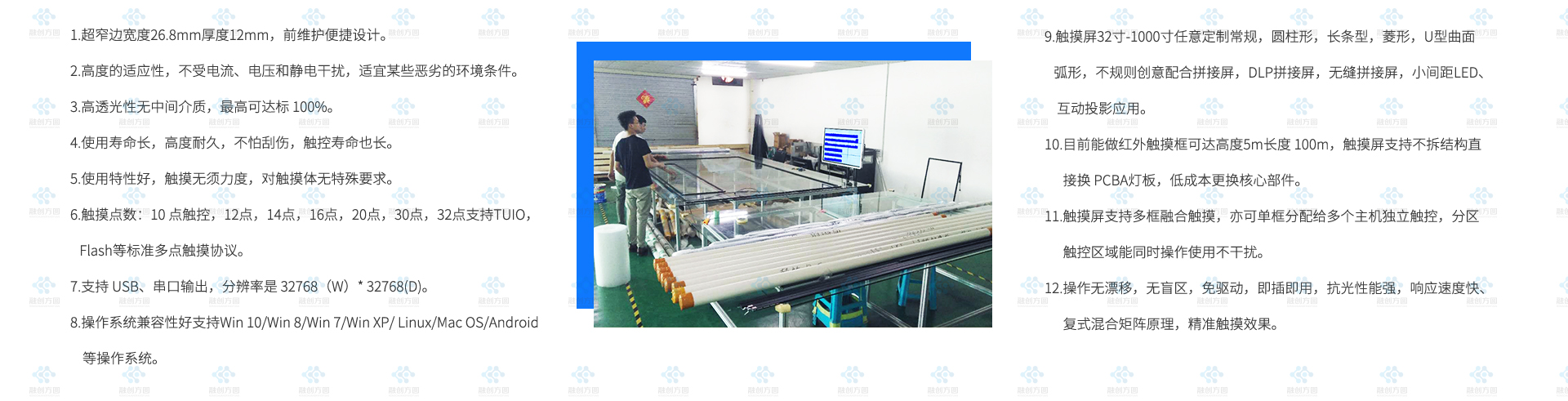 南京是江蘇省省會(huì),是一座歷史文化名城,融創(chuàng)方圓2×4大尺寸紅外多點(diǎn)觸摸屏坐落這座城市,這套紅外觸摸屏對(duì)角線有199寸超大尺寸紅外觸控屏結(jié)合8臺(tái)拼接屏...